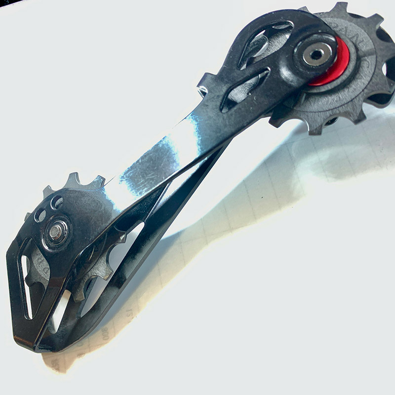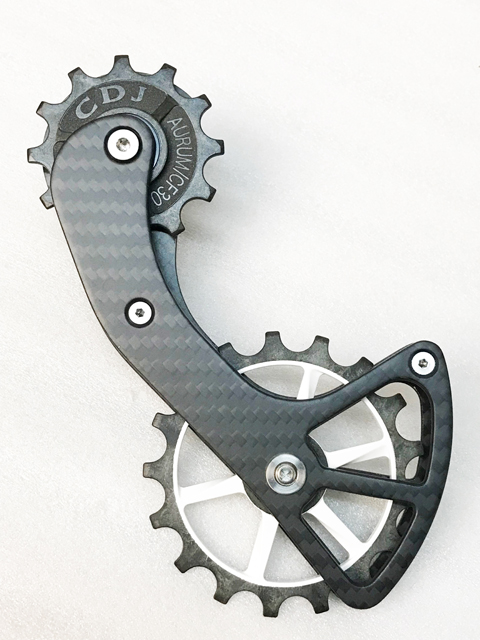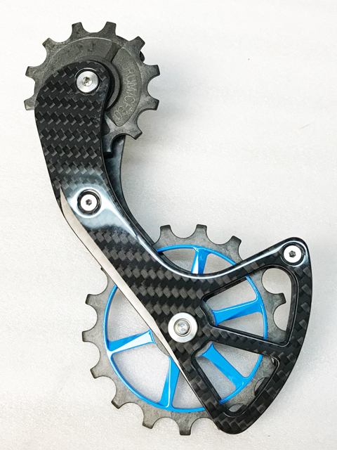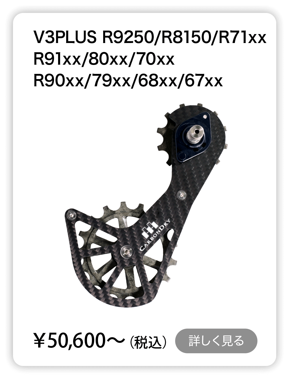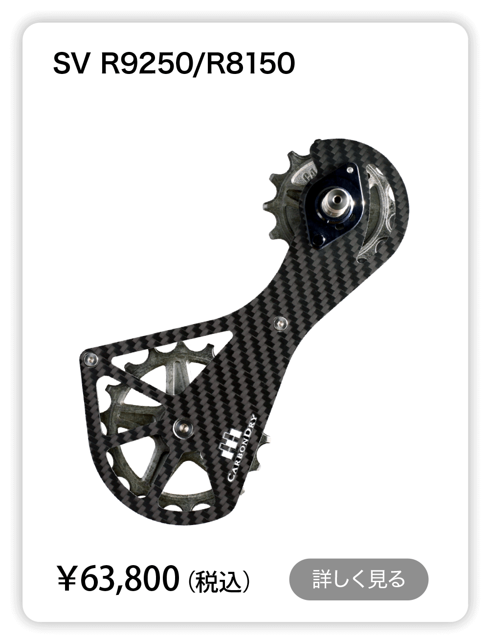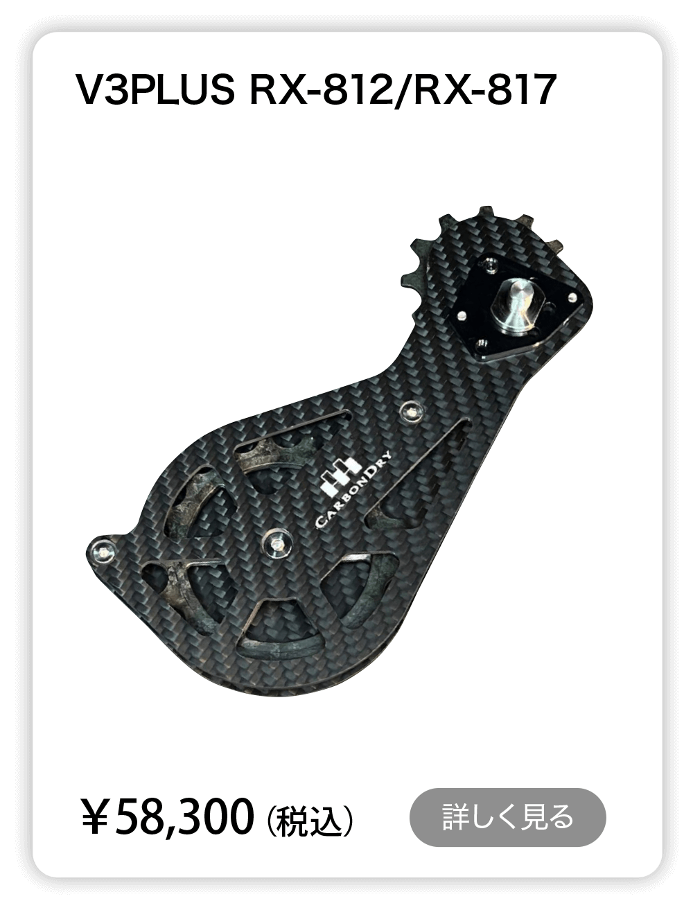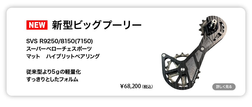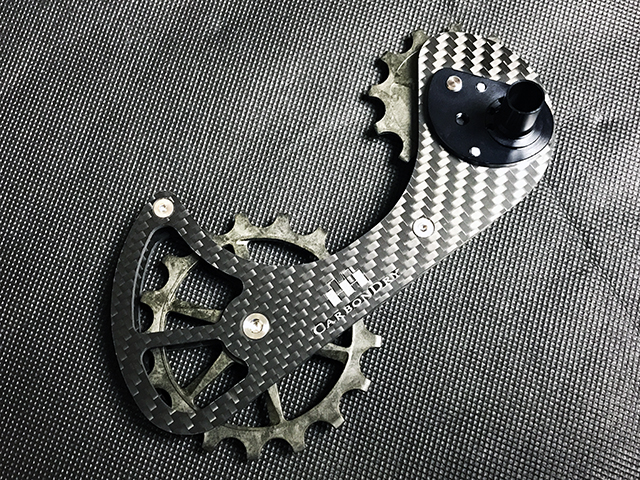 ■プーリーケージはドライカーボンを使用し、マットクリアなヌードカーボン仕上げ。新価格は44、000円 税込