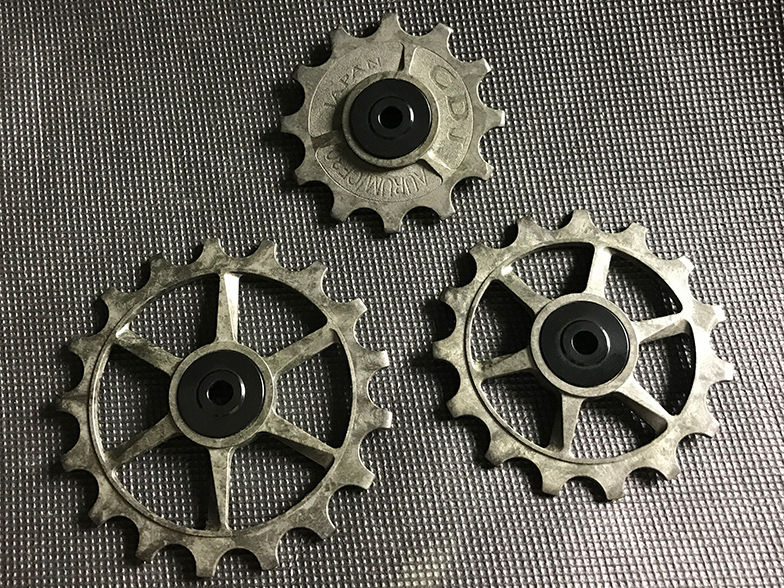 プーリーにメッキ仕様が加わりました。11t~18tまで1個¥9,900(税込)で承ります。チェーンの当たる部分は多少メッキ剥がれが起きますのでご理解ください。