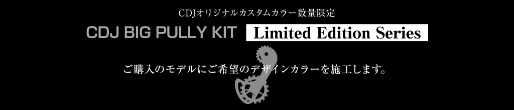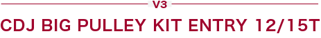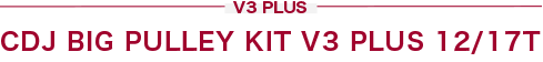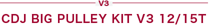 今お使い頂いているCDJビッグプーリーキットにV3プーリーセット(12/15T)が装着可能です。2%前後の抵抗軽減と静音性が向上します。更に約4.8gの軽量化になります。(当社比)なお、交換にはセッティングが必要になります。