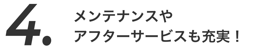 上記サービスはファーストオーナー様に対してのサポートでございます。中古購入等セカンドオーナー様に関しては別途ご相談ください。