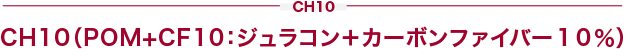 物性 CH10 (POM+CF10) 汎用POM (M90) 比重 1.44 1.41 重量比較 15T 5.3g - 引張強度 123MPa 60MPa 荷重たわみ温度 161℃ 110℃ 摺動特性 0.28 0.46