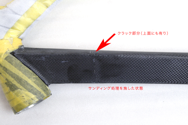 もちろんそのままでは不安という事で、修理依頼となりました。クラック箇所をサンディングしてクラックの状態を確認しましたが、