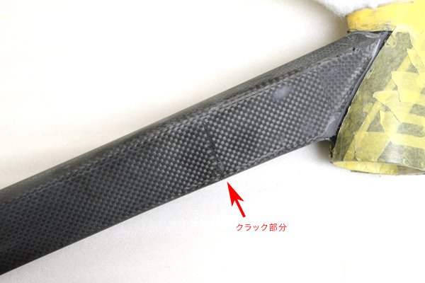 よって、カーボンの肉厚が薄く太いのでノーマルの箇所を押すとへこむくらいの強度となっており、修理においても気の使うところでした。