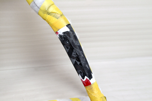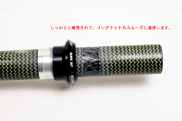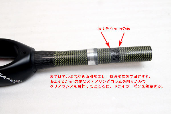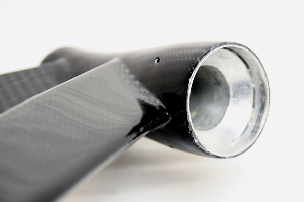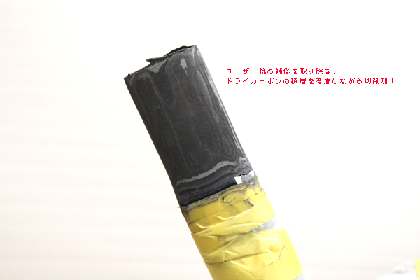 その後パイプを削り込んで、ドライカーボンを積層して接合かつ補強する。