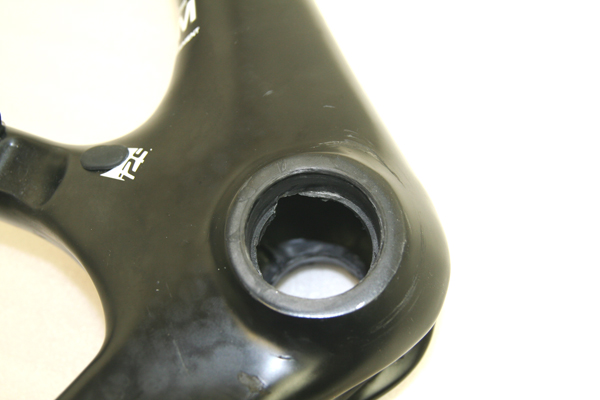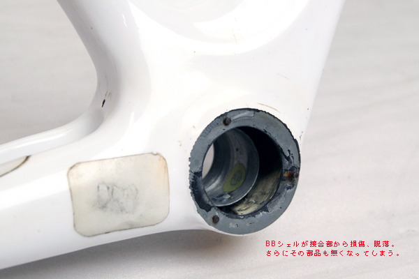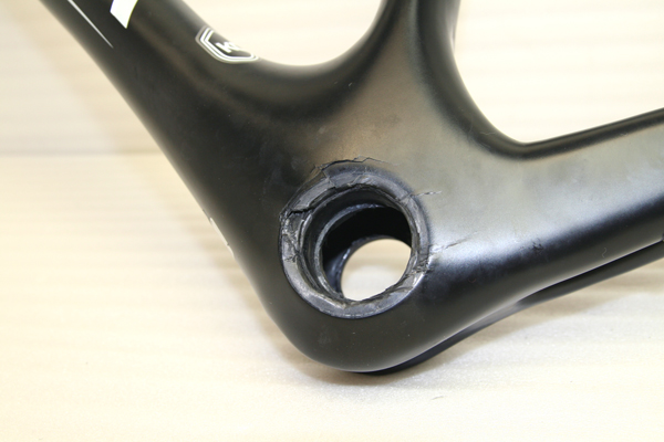 BBハウジングとフレームが一体になっているタイプでフレーム側にも亀裂が入っている状態でした。