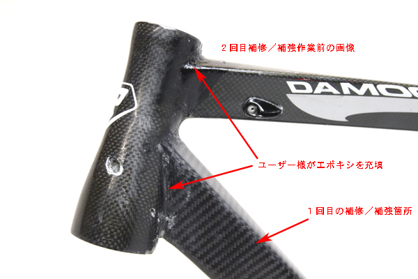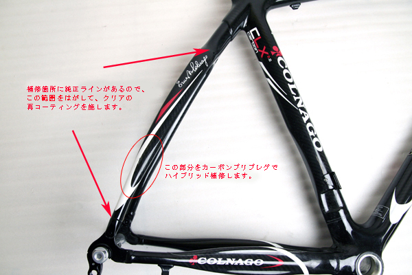 ■カーボンサイクル補修基本作業例CDJはドライカーボン製サイクルフレーム補修実績ナンバー1です。