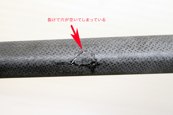 *転倒によりトップパイプに長いクラックが左右に入ってしまい、特に右側は裂けて穴が空くほどのダメージを負っていました。