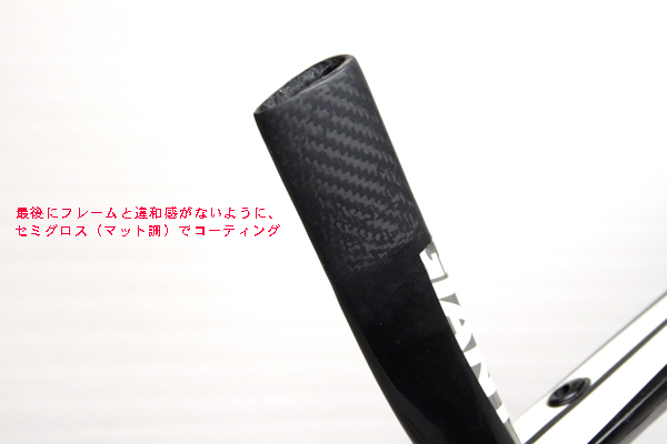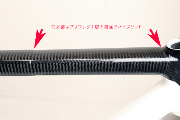 今回はヘッドチューブ全般をハイブリッドする事によって、トップチューブとダウンチューブとの接合剛性を上げる事もポイントして