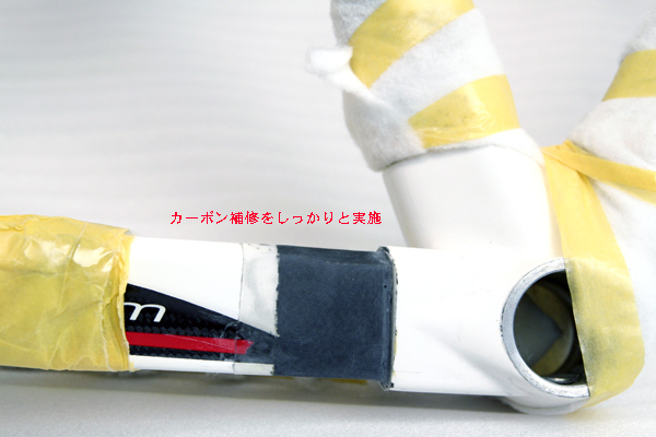 特に補修部が重くなる事によって重心が上に移動してしまい、ダンシングでの振りや下りでのカーブなど、フィーリングが変ってしまうのでは?