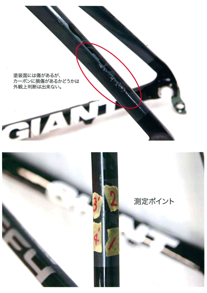 しかしその一方では走行中のアクシデント、転倒をはじめ、駐輪中、保管時にほんの少しの衝撃でもクラックや深傷が発生するデメリットも少なからず発生しています。