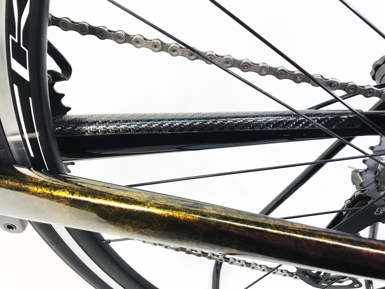 1. ドライカーボンをフレーム等に合わせて成形、オーダースーツのようにジャストフィット