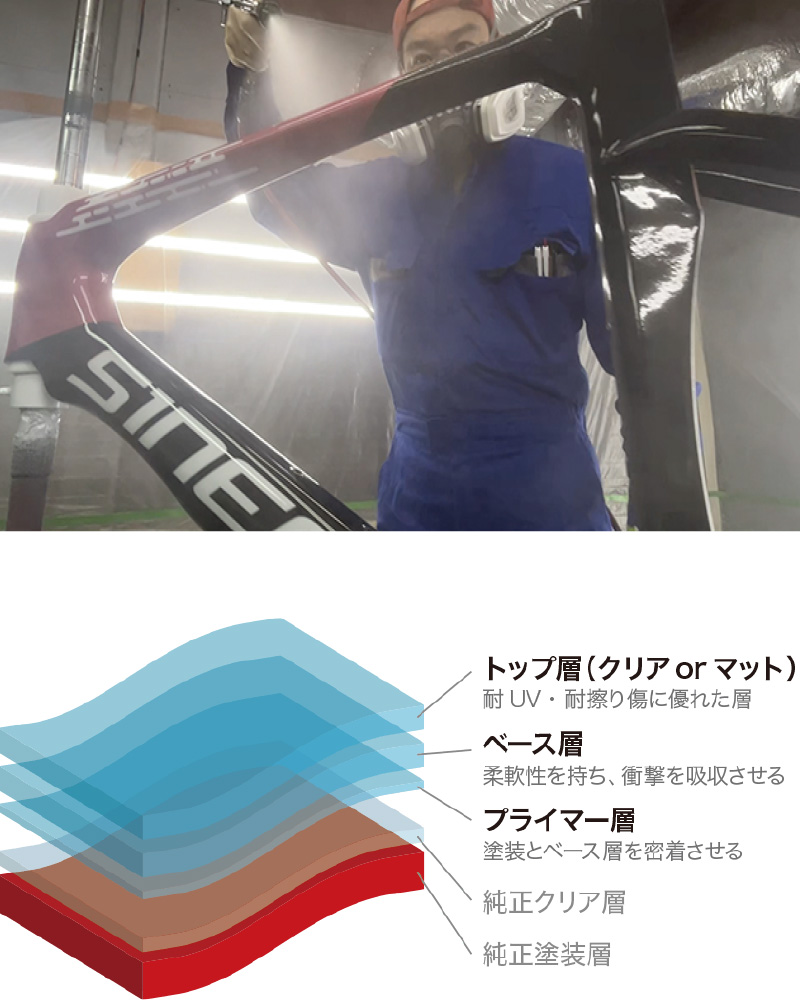 ⑨自転車フレームでわずか約30~40gの重量増で施工可能