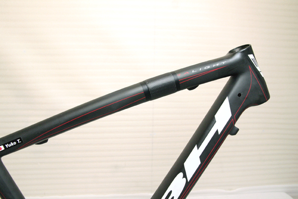 高橋選手の駆る「BH ウルトラ ライト」は、実はトライアスロンプロショップ「BACK UP」様からのご依頼で、弊社でトップチューブの補修をさせていただいた機材でした。