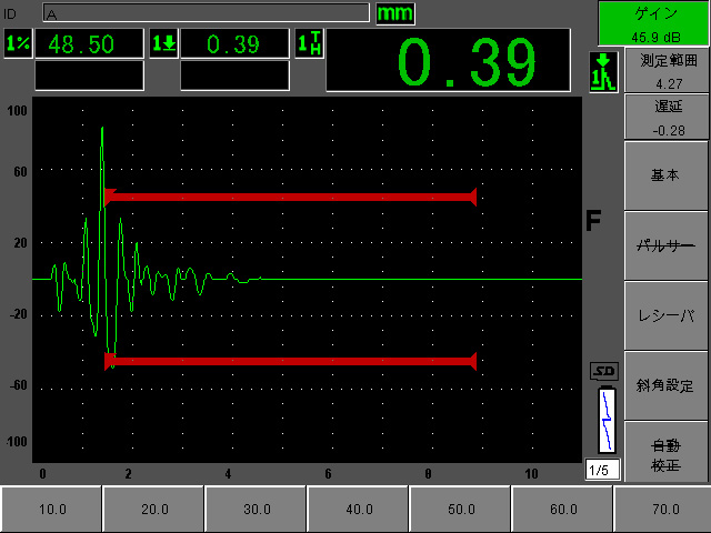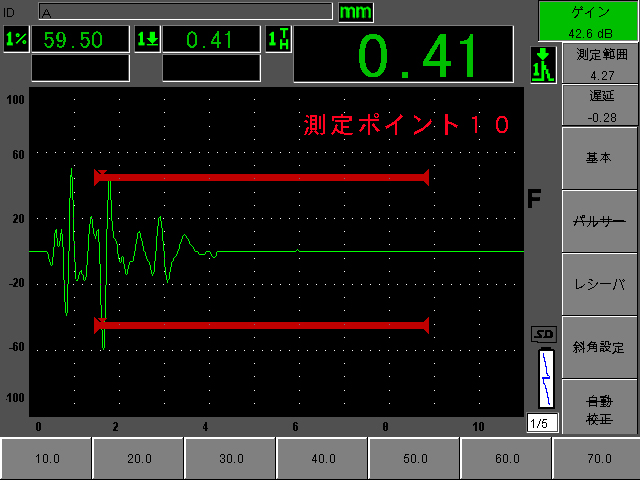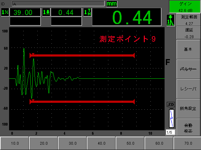 1)正常と思われる測定ポイント11と比較すると9/10では内部剥離と思われる数値となっている。