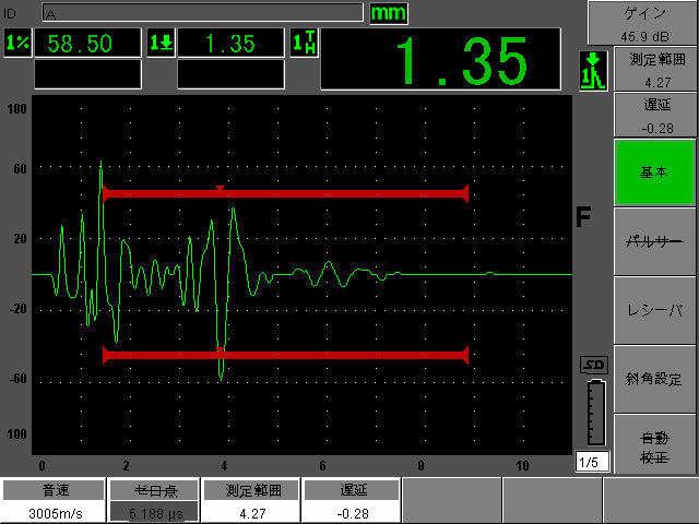 3)さらに各所診断していくと、その上部周辺でも内部剥離と思われる数値を検出。