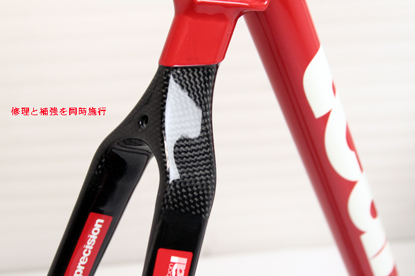 外観上は全く問題のないカーボンフレームでも使い方や荷重などによって、ストレスがかかっている箇所がある可能性があります。それらを補強(カーボンチューニング)する事によって、さらに性能を引き出し、安定した走行に貢献します。