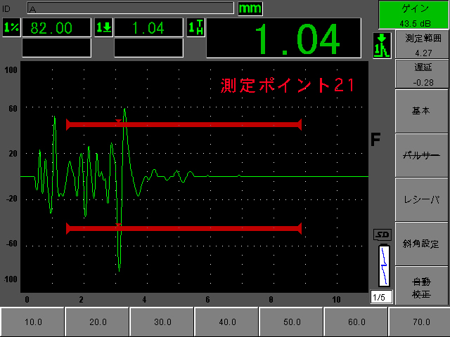 2)同様に正常と思われる21と比べると20も内部剥離と思われる数値になっている。